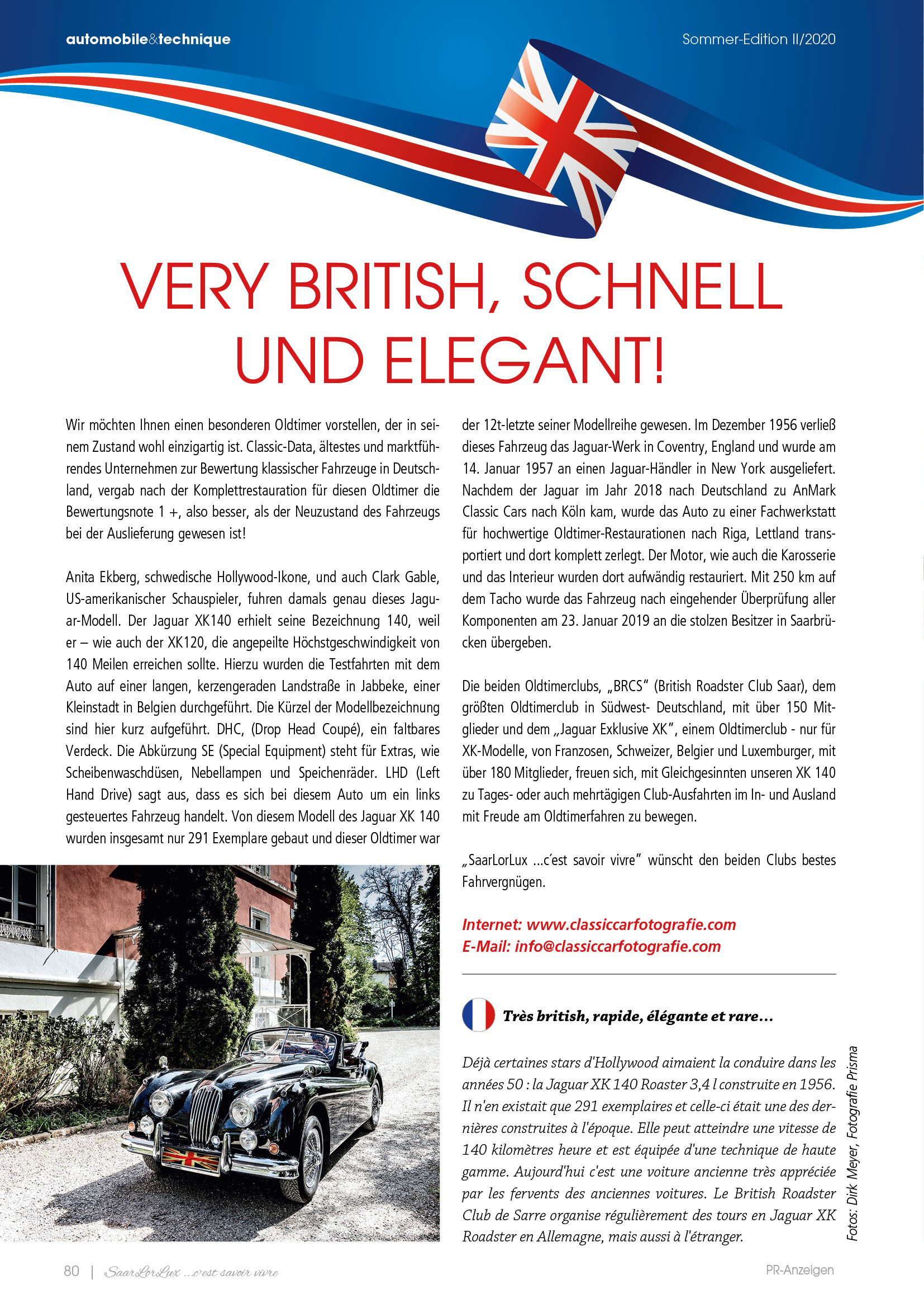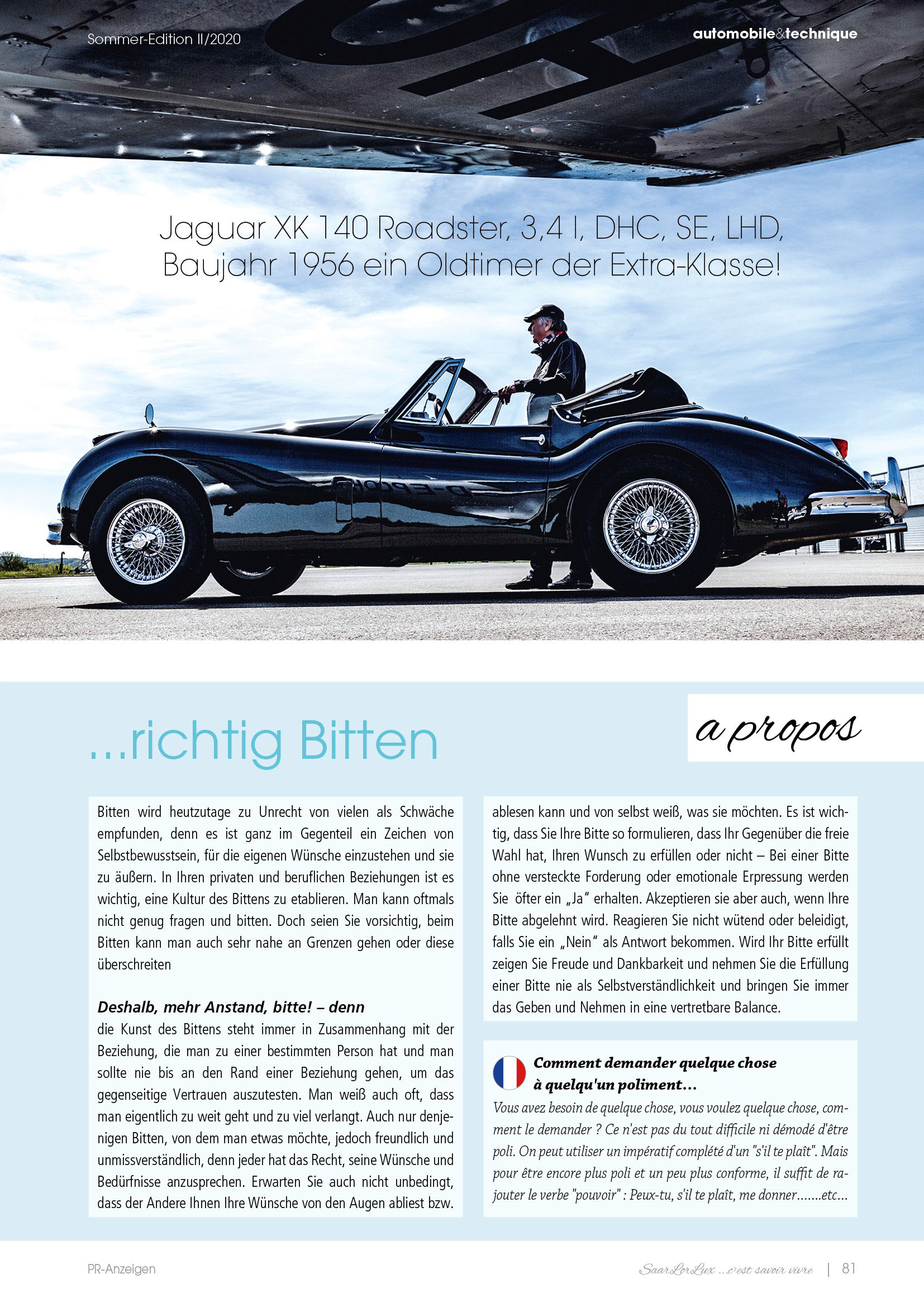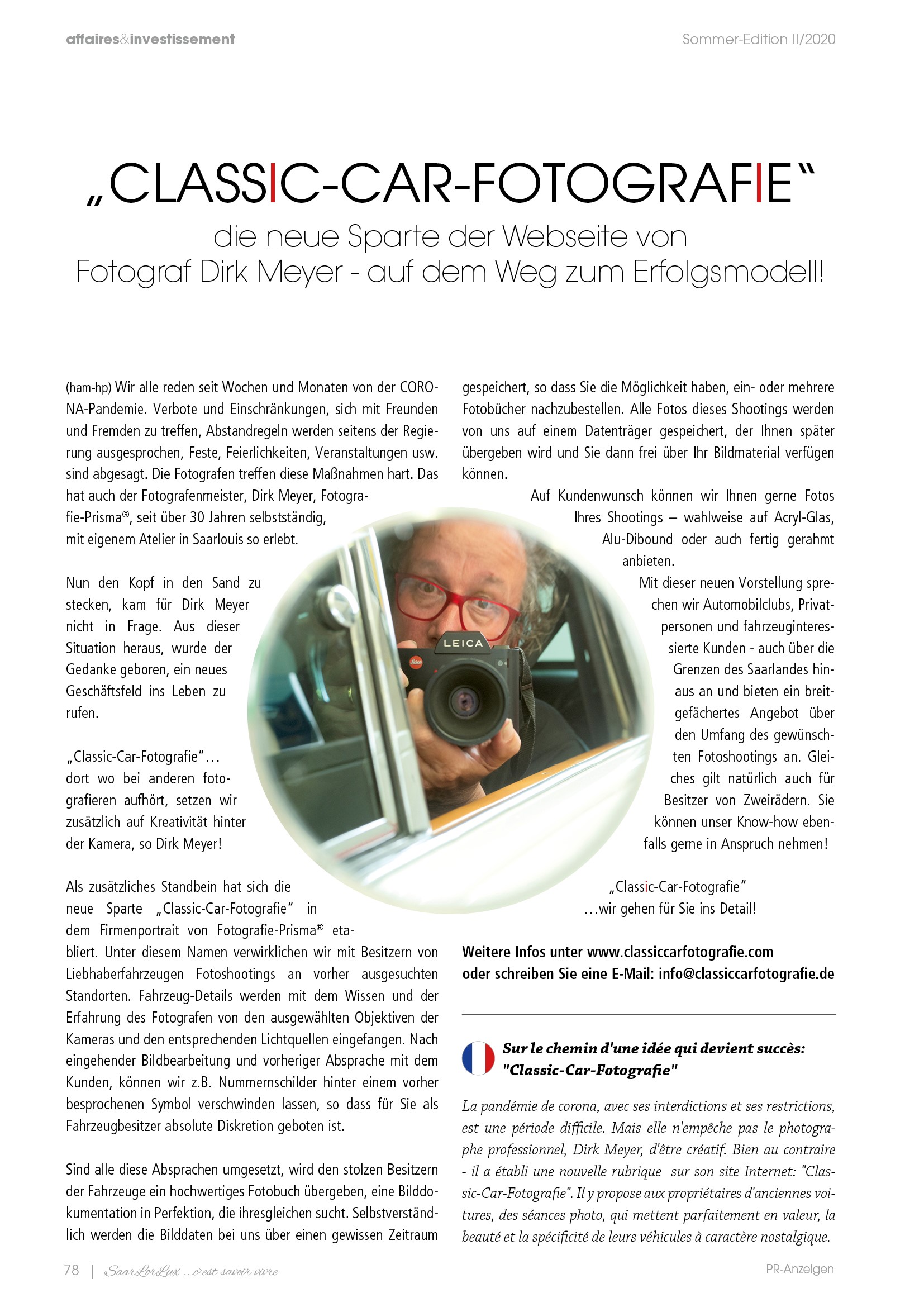 Großer Bericht über classiccarfotografie in der Sommerausgabe 2020 des SaarLorLux - Savoir Vivre - Magazins